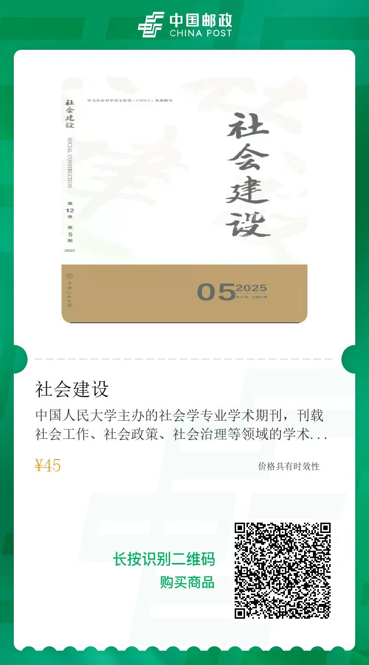 《社会建设》是教育部主管、中国人民大学主办的社会学专业学术期刊,于2014年9月正式创刊,2025年8月入选中文社会科学引文索引(CSSCI)来源期刊。创刊以来,《社会建设》杂志已经发表了大量高质量、前沿性的社会工作、社会政策、社会治理等相关领域的优秀研究成果。本刊的作者队伍包括众多知名学者和青年才俊,他们的研究成果产生了重要影响。
